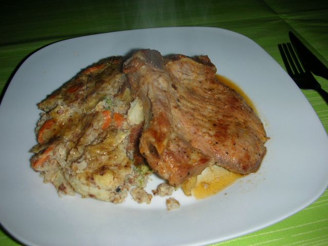Sreda: svinjski zrezki s porom in kuhano kolerabo, kitajsko zelje s koruzo
