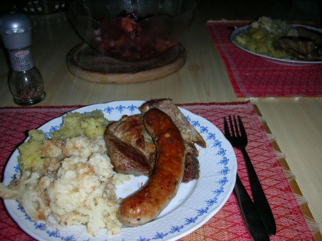 Včeraj: porova juha, pleskavice in krompirjeva solata, pa še pijana nevesta, tokrat točno po receptu: