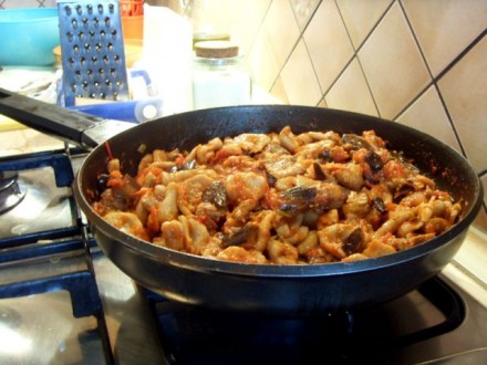 Tole z zamudo objavljam, danes pa kuham golaž iz treh vrst mesa- goveji, svinjski in puranji, zraven bo polenta in solata.