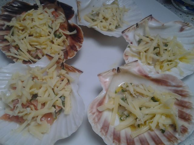 Nadaljevala sem z gratiniranim lososom in kapisantami