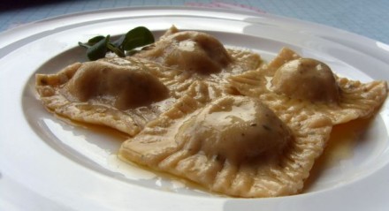 in pirinimi rezanci z bučko, paradižnikovo omako in sirom.