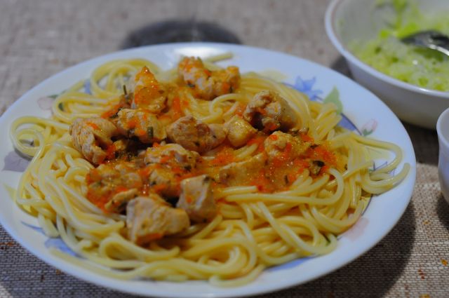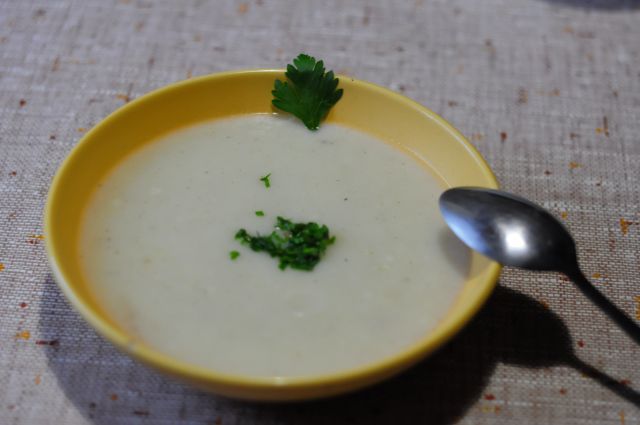 Kremna juha od cvetače in špageti ( seveda al dente, *ebo jih al dente in kdo ga izmisli, za al dente naj bi se kuhali 11 min, barila št. 7, po 30 min so bili še kar al dente.