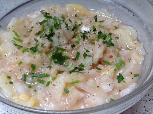 Možu pa sem pripravila krompirjevo solato, hrenovko in kruh s semeni.