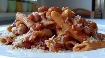 Danes: polnozrnati peresniki, paradižnikova omaka s fižolom