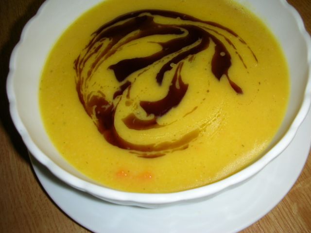 Danes pri nama: krem juha iz bučk in krompirja, krompirjeva solata z gorčico in majonezo, eden še pečenko, druga pa hrenovko