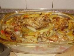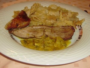 Kurja juhica, đuveč, mešana solata, palačinke,