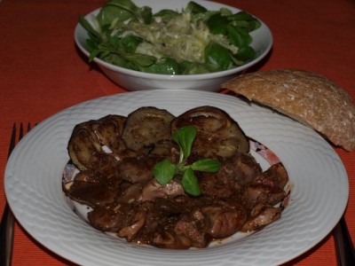 Pražena piščančja jetrca, popečen malancan,