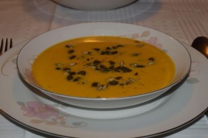 Pri nas pa danes bučna juha s praženimi bučnimi semeni in bučnim oljem, potem pa nemartinovo kosilo.