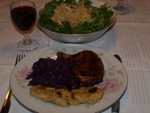 mzmDanes je vleklo malo na martinovo; dušeno rdeče zelje z jabolki, pečene piščančje kračke, špinačni mlinci.