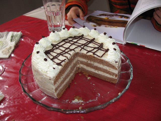 Za sladico pa kostanjeva tortica iz knjige od Alenke Kodele in kozarček šampanjca, da smo nazdravili sljavljencu.