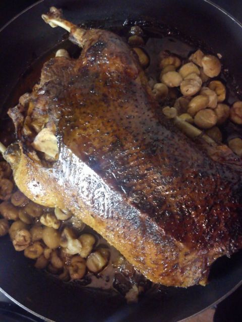 OgnjičDanes pri nas: goveja juha (pa 2 gosji špički od perutničk sta bili noter) s korenčkom in domačimi rezanci, pečena goska, rdeče zelje z brusnicami in jabolkom in kostanjem, začinjeno po moje, skoraj pire krompir, pečena jabolka in kutine s prelivom iz izabele.