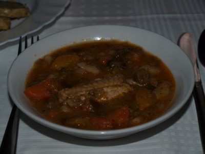 mzmgoveja juha, pohani puranji zrezki, krompir na solato