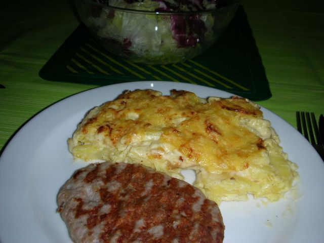 Danes: kraljevi krompir, ene čudne pleskavice, solata in Angelske solze, tudi teh je bilo malo ![]()