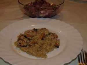 ), klapavice na rižoto; rdeče in belo zelje na solato: