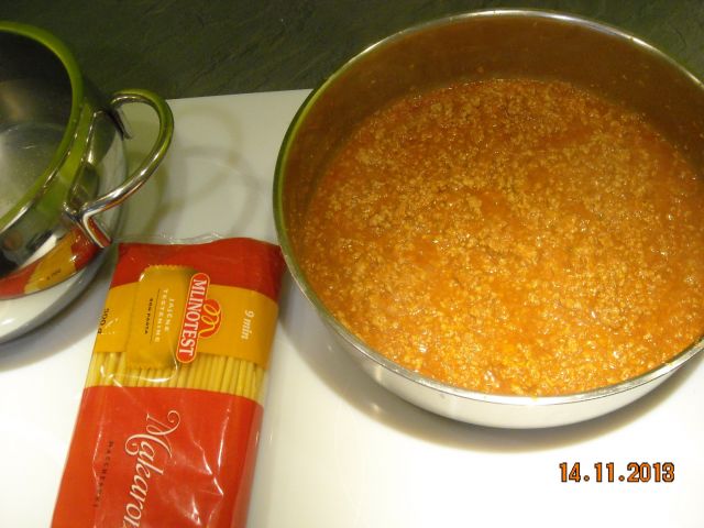 Četrtek: omaka s faširanim mesom, makaroni in solata. Ravno je bila na forumu debata od te bele plošče.