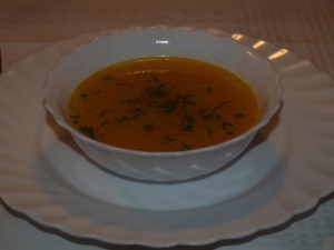 sreda: pikantna korenjčkova juha, ostanki bučnega zavitka ter endivija