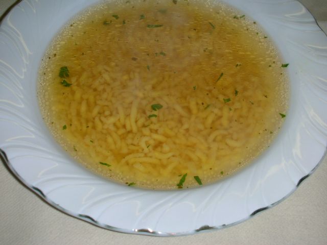 Danes kokošja juha z ribano kašo,steak pečen na medium,domače od slane primljene tenfane vrzote,krompir iz pečice...za sladico pa prinesla hči mandulat iz Andrejevega sejma...