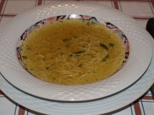 Goveja juhica z domačimi rezanci; puranja pečenka, smetanovi knedlčki; solata - korenček, brokoli, rdeča pesa