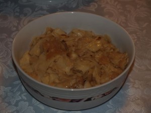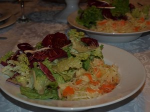 restan krompir, cvetača, pečena goska, kodrolistna endivija v solati, potička