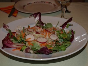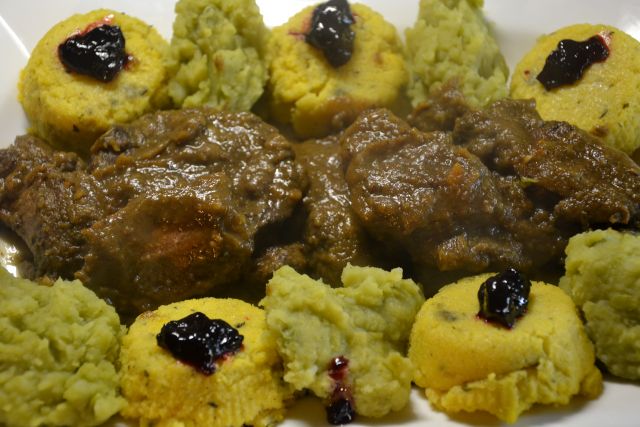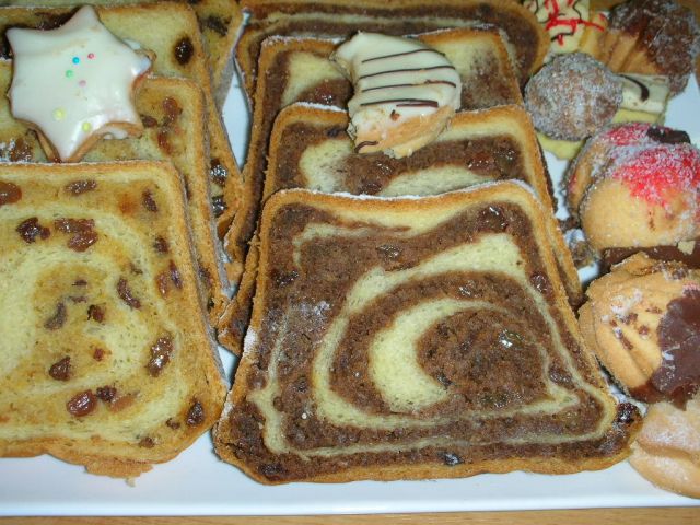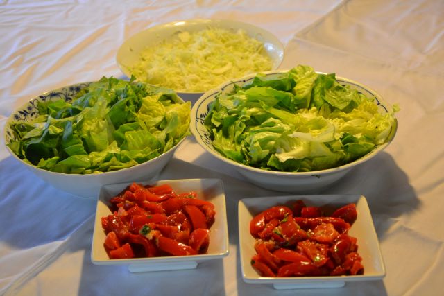 hladni bife: zelenjavni koščki iz baze, francoska solata, štefani pečenka s slanino, majhni dunajčki iz svinjskega mesa, ker pravijo, da pujsek mora biti, ker vedno s svojim rilčkom rine naprej, potice in piškoti vzeto iz zamrzovalnika, prav tako tudi sarma za jutri