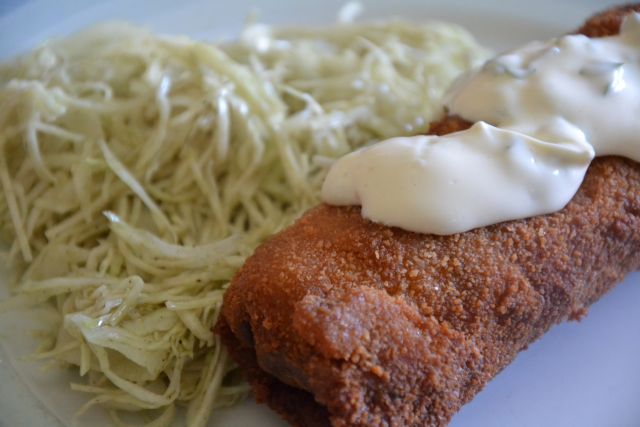 danes nadaljevanje cvrtih jedi; kaneloni (no, ponarejeni seveda, ker so bile palačinke namesto tulcev iz testa), prej juha (ostanek od včeraj, le da danes s fritati ali zlatimi kroglicami), čez kanelone tatarska omaka, zraven zeljna solata. In, juhu, prvič po 15 letih so mi uspele palačinke, do sedaj je bila to moja nočna mora ...