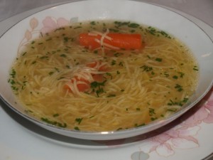 xMURKAxZelenjavna juha, rezanci z rakci (a ugane kdo, po čigavem receptu so), solata.