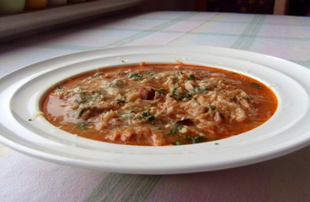 juhica z jetrnimi cmočki, mesna lazanja,endivija z