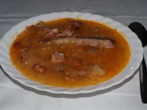 Danes, pasulj, šink, krompirjeva solata .