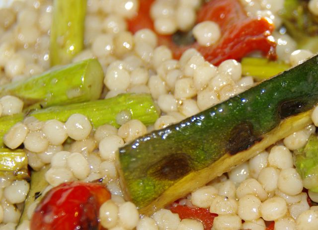 Včeraj kljub ničli zunaj, kuskus z zelenjavo z žara in kosom piščančjih prsi, prav tako z žara.