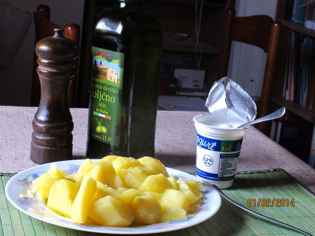 juha z rižem, sv. kare pečen v foliji z malo olja in začimbami, pire, zel. solata s fižolom (mož bo še nekaj časa na lažji dieti, zato bolj enolična in pusta prehrana in seveda manjše porcije