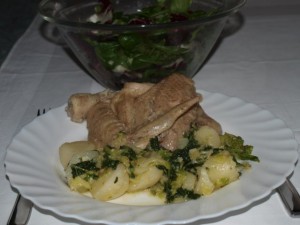 Nedelja: juha, mlad krompir, pečen piščanec, solata