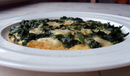 Grahova juha, domači ravioli, polnjeni s špinačo, polpeti v paradižnikovi omaki, solata iz zelja, rukole in špinače