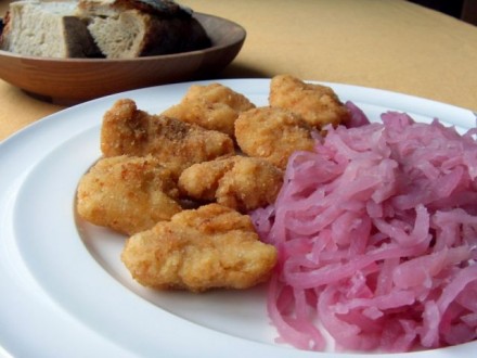 Sicer pa danes: krvavice in kisla repa. Za sladico pa jabolčni zavitek iz skutnega testa.