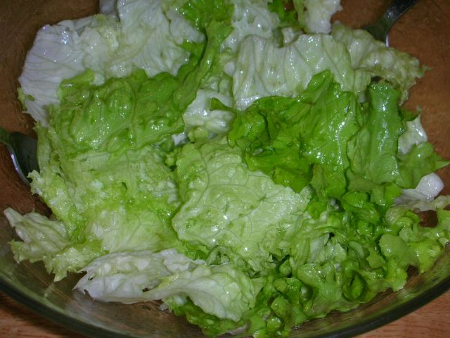 Danse poenostavljena varianta: jajca na oko na ocvirkih, ostanki solate od včeraj zvečer, domači kruh, en ![]()
