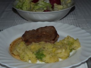 Štefani pečenka,endivija,fižol, česen.Pa