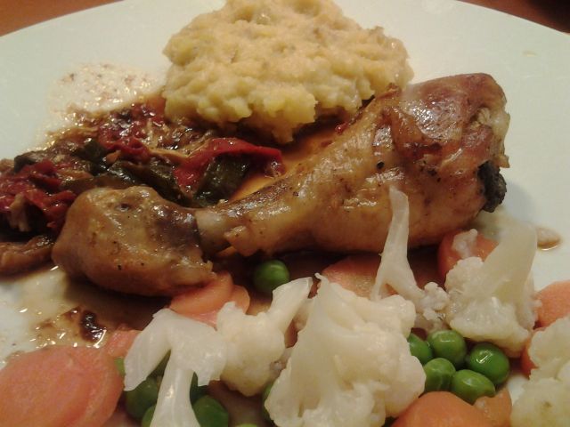 jutri špinača, pire, piščančji file in motovilec