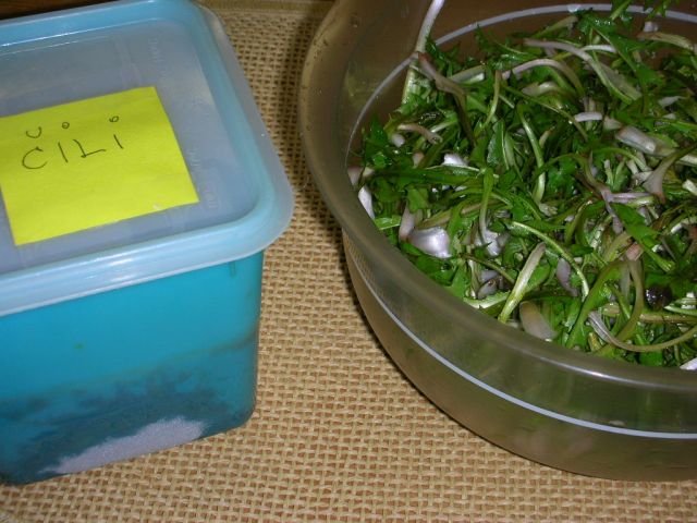 Danes pri naju: za enega zadnji chili con carne iz zamrzovalne omare, za drugega pa prvi včeraj nabran regrat z jajci, toplim krompirjem in zabeljeno z ocvirki, zraven pa kruh, ki že tako lepo dišiiiii ![]()