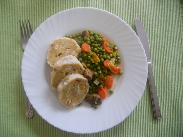 Ponedeljek: goveja juha z zdrobovimi žličniki in zloženka s krompirjem, slanino in porom.