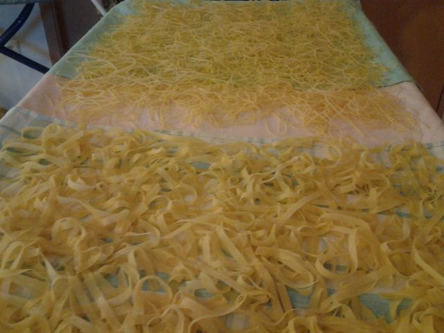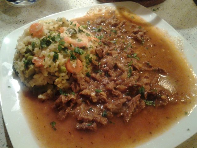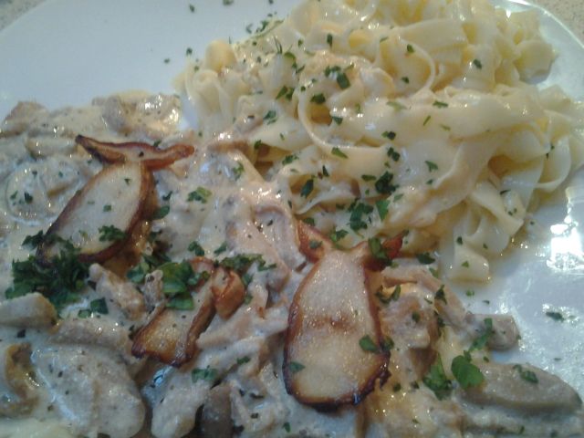 Včeraj goveja juha z domačimi rezanci, domači široki rezanci, zrezki v sirovi omaki z jurčki, mešana solata