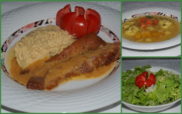 - kurja juhica z rezanci in grizovimi knedlčki;