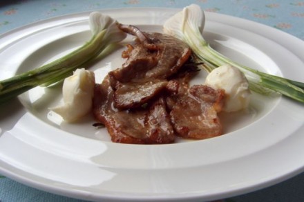 Jutri piščančji koščki na čebuli, valoviti rezanci, domača solatka berivka.