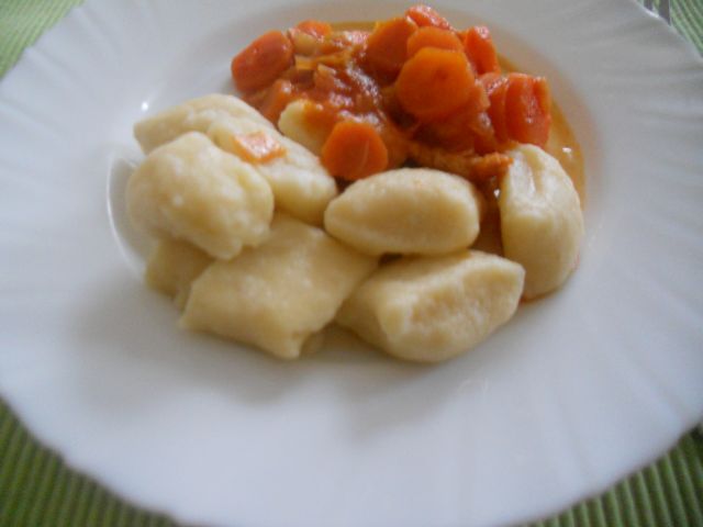 Danes: svinjski zrezki v omaki, njoki, solata, miške