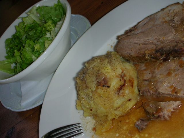 pečenka, tenstan krompir, zelena solata, zdaj pa že za jutri pakiram, bo kar bo...![]()