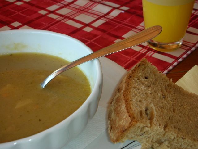 Ponedeljek: gobova juha, že dolgo tako dobre, pristne, nisem jedla, kruh s semeni iz krušne peči ![]()