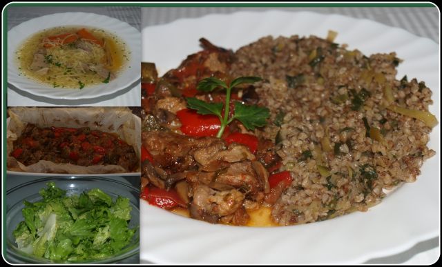 Juhica iz telečjih kosti; nekaj podobno "hadžijski čevap" (gledala na RTL - 321Kuhaj), ajdova kaša na poru,