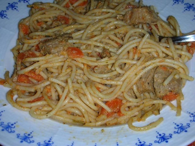 Piščančji paprikaš pa blitvini široki rezanci :)