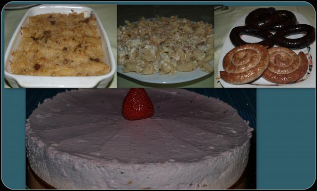 tanjajSobota: Dušeno kislo zelje, beli žganci, zabeljeni s kislo smetano in prepraženo čebulo, krvavice / pečenice; jogurtovo-jagodna tortica (taprava bo naknadno):