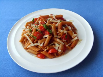 dagaDanes: polnozrnate testenine Trije paradižniki in en fižol