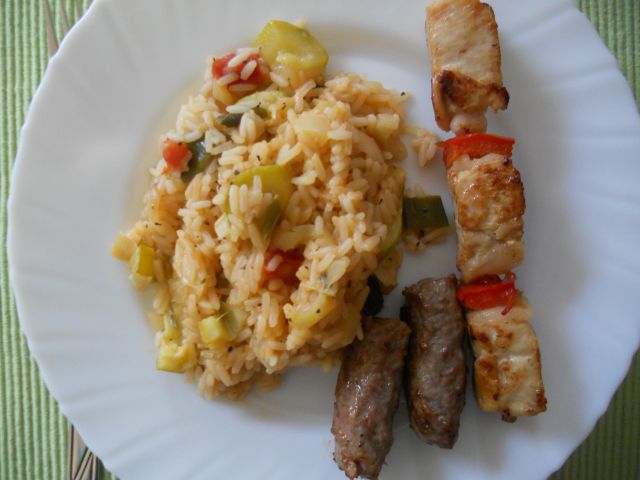 blossomDanes: mediteranska rižota, piščančji ražnjiči, čevapčiči, mešana solata, keksi z ovsenimi kosmiči