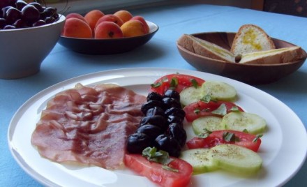 mopsikaVčeraj fileji mesa na žaru, popečen krompir z veliko pečene čebule, kumarična in paradižnikova solata